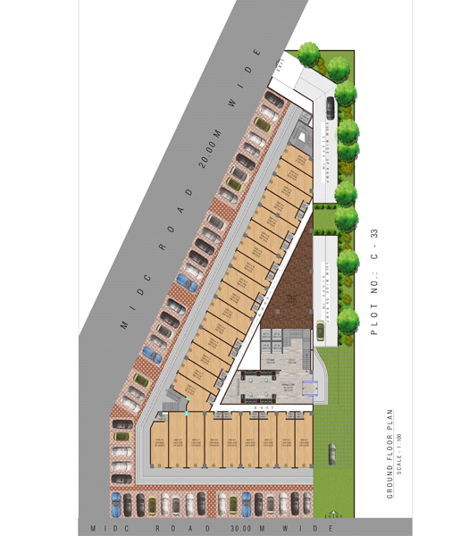 The ‘Palladium’ project aims to fulfil your needs and aspirations. The new entity will own and manage two levels of premium commercial shops on the ground level and a hotel comprising of Premium suites of 80-100 rooms on crowning doors adding value to the asset with a different experience. Palladium is located in Chakan, which is well-developed and one of the fastest growing industrial areas. Chakan is 30 km away from center of Pune. Besides Chakan being a great location, Palladium will have direct access to the main road with a frontage of transport.